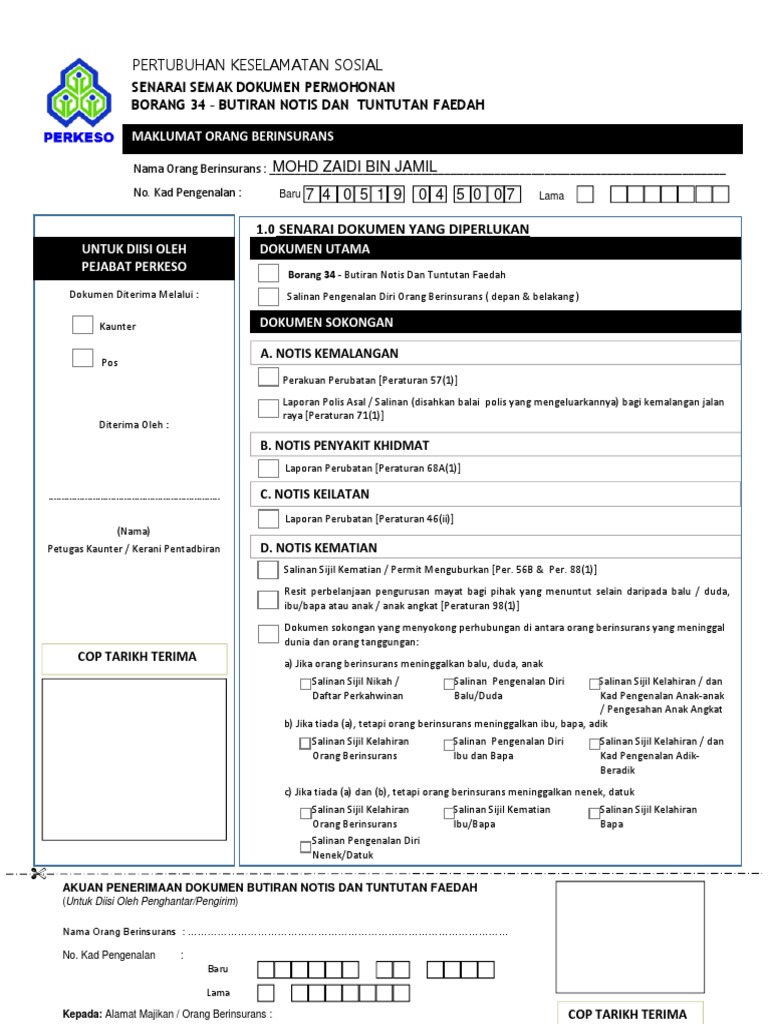 Caruman perkeso adalah penting untuk anda buat tuntutan sekiranya berlaku kemalangan luar jangka. Borang tuntutan bersama laporan dihantar ke perkeso. Manfaat dan perkara yang kita perlu tahu dari perkeso. Sila dapatkan borang penilaian jemaah doktor perkeso. Laporan perubatan biasa lain lain: