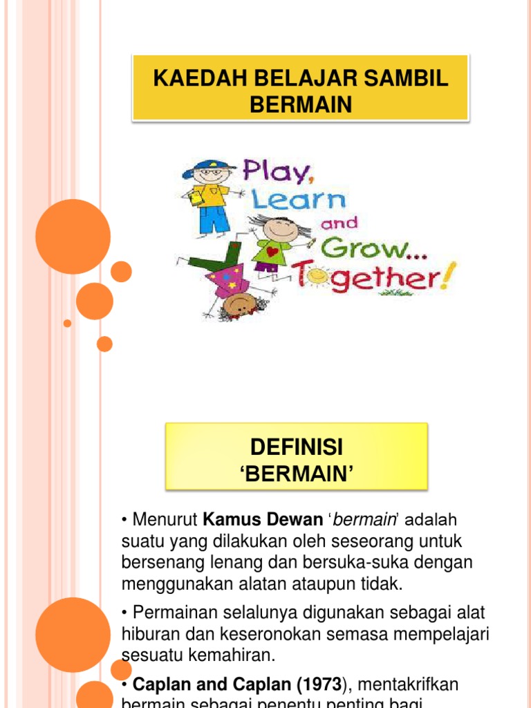 Abu jabatan ilmu pendidikan maktab perguruan islam abstrak kertas projek ini meninjau tentang perlaksanaan kaedah belajar melalui bermain di lima jenis tadika dalam proses pengajaran dan pembelajaran. More images for contoh aktiviti belajar sambil bermain » Jul 13, 2012 · contoh aktiviti main terdapat pelbagai aktiviti main yang menjadi asas kepada konsep belajar melalui bermain dalam pendidikan prasekolah, seperti main pasir; Siswa berada dalam lingkaran besar. Guru mengajak seluruh siswa berkonsentrasi kemudian dijelaskan cara permainan tahap demi tahap.